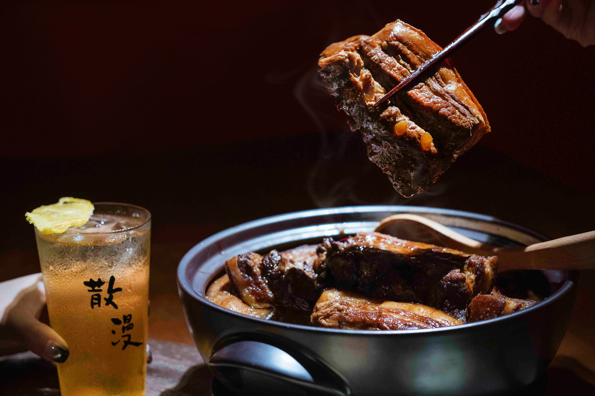 一點散漫的靈魂料理-「老頑童慢燉控肉」,看似家常,卻藏著師傅的執念與用心。選用當日台灣溫體豬,經過先煎、再以獨門藥材滷包慢燉4小時。滷汁經過數百回的調整,終於煉出不南不北、甜鹹適中、恰到好處的中式風味——肥而不膩、瘦而不柴,豬皮Q彈、滷香入骨。