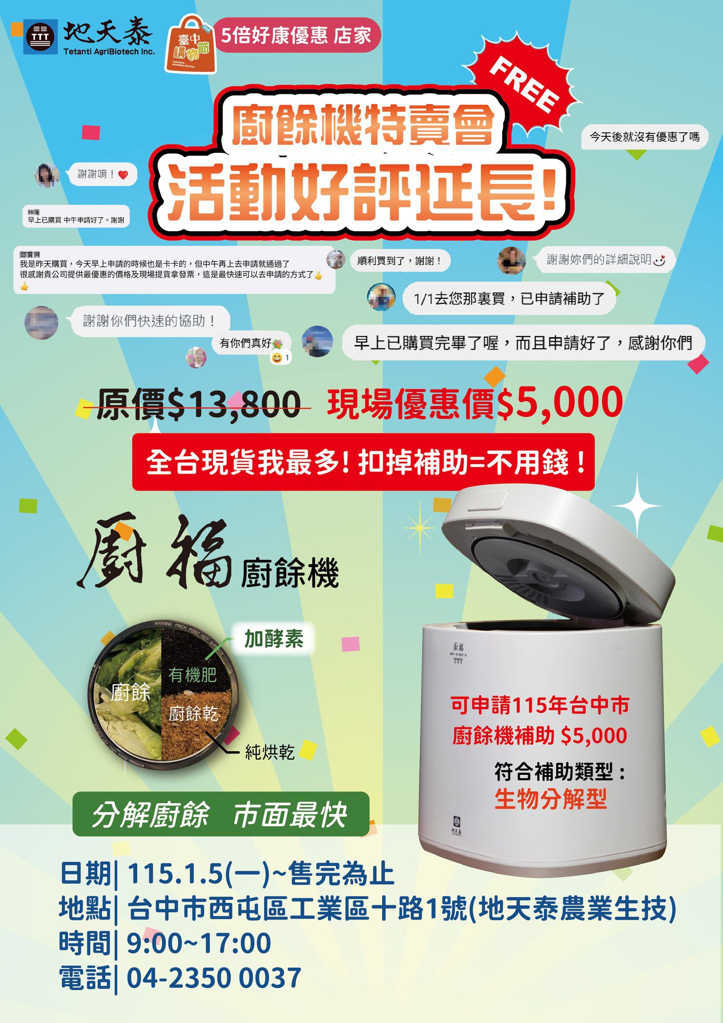 全國唯一採「全線上申辦」的台中市家用廚餘機補助計畫持續升溫,開放短短三天申請數即突破5,200件,不僅創下全台補助速度新高,也成為開春最受矚目的環保政策話題。市府同步盤點申請數據,揭曉市民最愛的廚餘機類型、最高單價及最大容量機種,顯示補助政策成功帶動市民投入源頭減量,也促使高規格機型銷量同步成長。