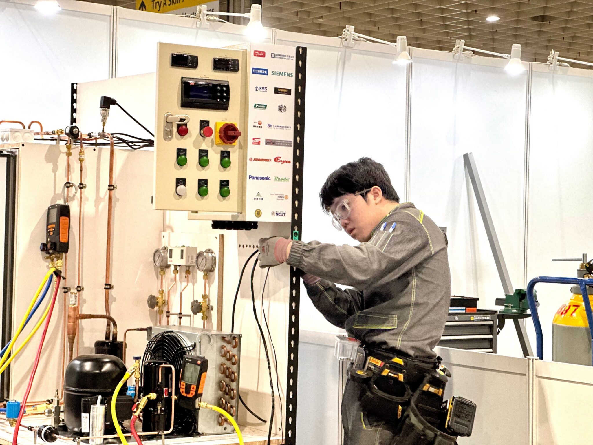 在冷凍空調職類奪金的陳同學表示,競賽內容涵蓋冷凍裝置製作與安裝,包括銅管焊接組裝、機組元件安裝調整、壓力測試、電力配線、系統保溫、冷媒管路探漏與充填、試車調整、家用空調故障診斷等多項技術,為期三日16小時的競賽中,他在冷媒管路製作、空調組裝與節能技術評測皆表現亮眼,並在最終試車順利完成全部項目。他分享:「國手的強大,不只是技術,更是心態。」指導老師也說,國際賽壓力巨大,穩住選手心態比技術指導更關鍵。