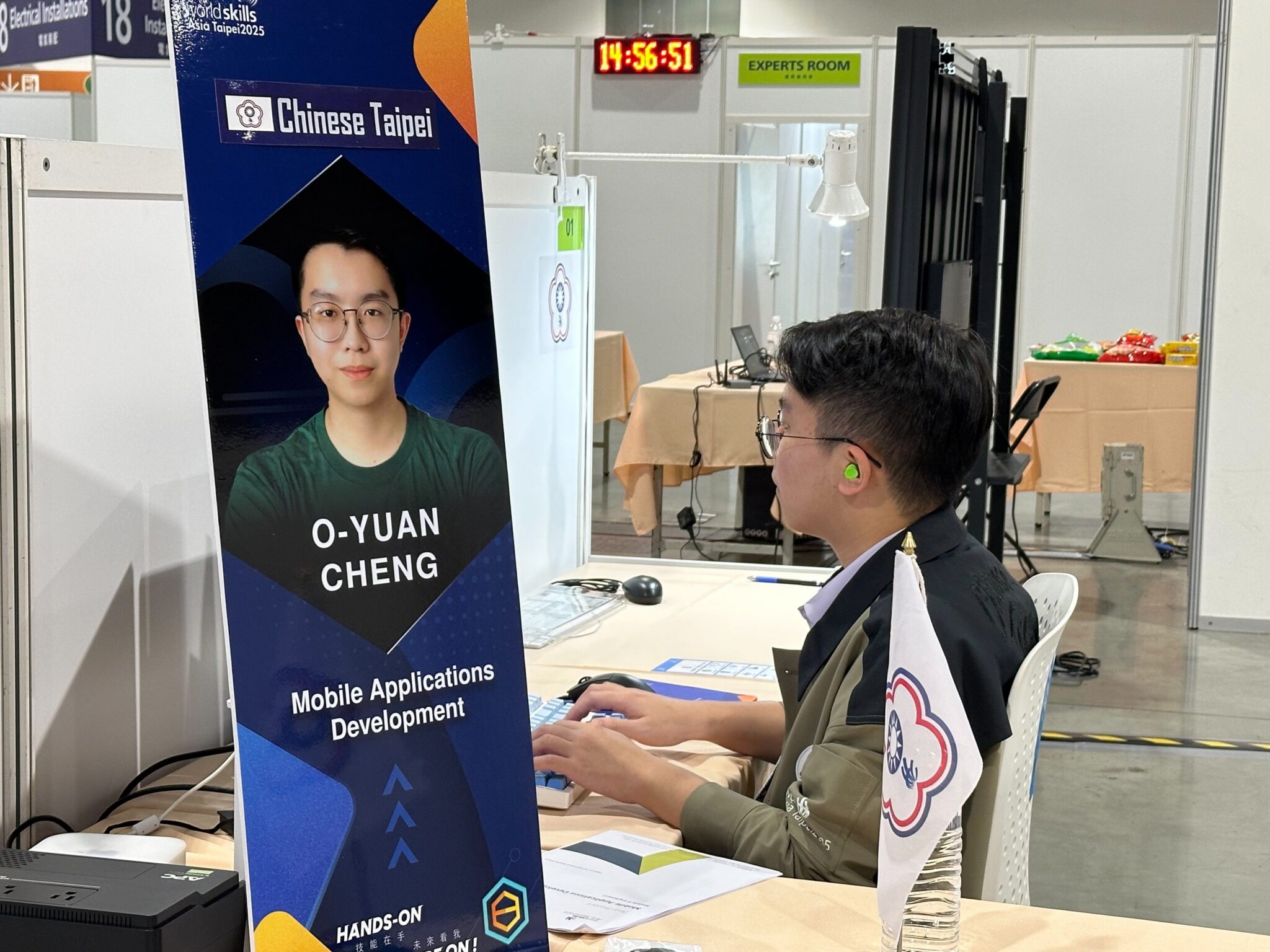 大安高工鄭同學勇奪行動應用開發金牌,此次競賽主題為「X-French Travel plans」,目的為幫助民眾了解法國旅遊景點、歷史和文化,圍繞此主題以開發多個應用程式,如手機滑雪遊戲、旅遊紀錄等。該職類以整合介面設計、功能實作與測試,並需考慮到使用者體驗,全面考驗選手軟體設計與程式開發能力。鄭同學於備賽期間長期投入跨平台技術練習,在高壓的3日賽程中依然穩定輸出,展現沉著精準的軟體專業。他表示:「能站上國際舞台,是日積月累的結果,也證明堅持能帶來更大的視野。」