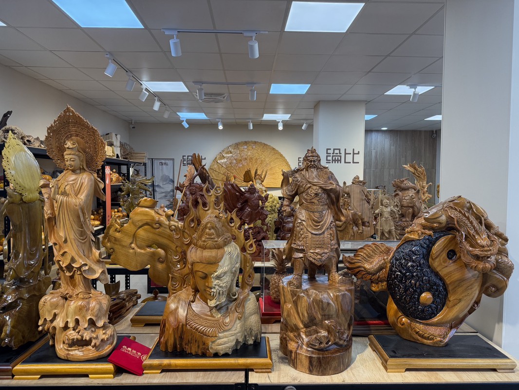 他也觀察到,除了個人收藏外,部分消費者會將木雕藝品作為送禮用途,例如開幕或重要節慶贈禮。透過直播介紹,讓觀眾能更了解作品,也讓送禮者有更多選擇。