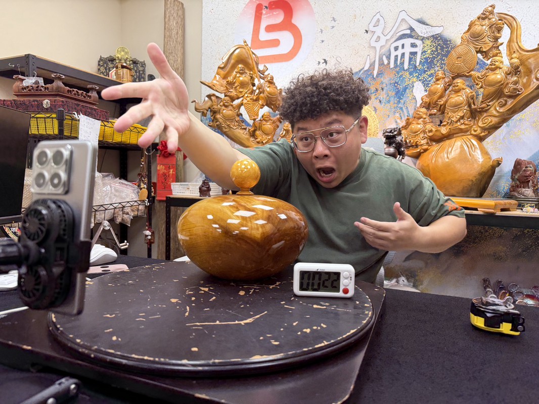 談起投入直播的契機,張言綸表示,過去在展示空間中,經常看到消費者對某件木雕作品充滿興趣,卻因為時間或當下仍在考慮而暫時放下。「很多人離開後,心裡其實還是記得那件作品。」他指出,有些消費者會再次回來詢問,但也有人因為錯過而留下遺憾。這樣的經驗,讓他開始思考如何讓這些作品持續被看見。
