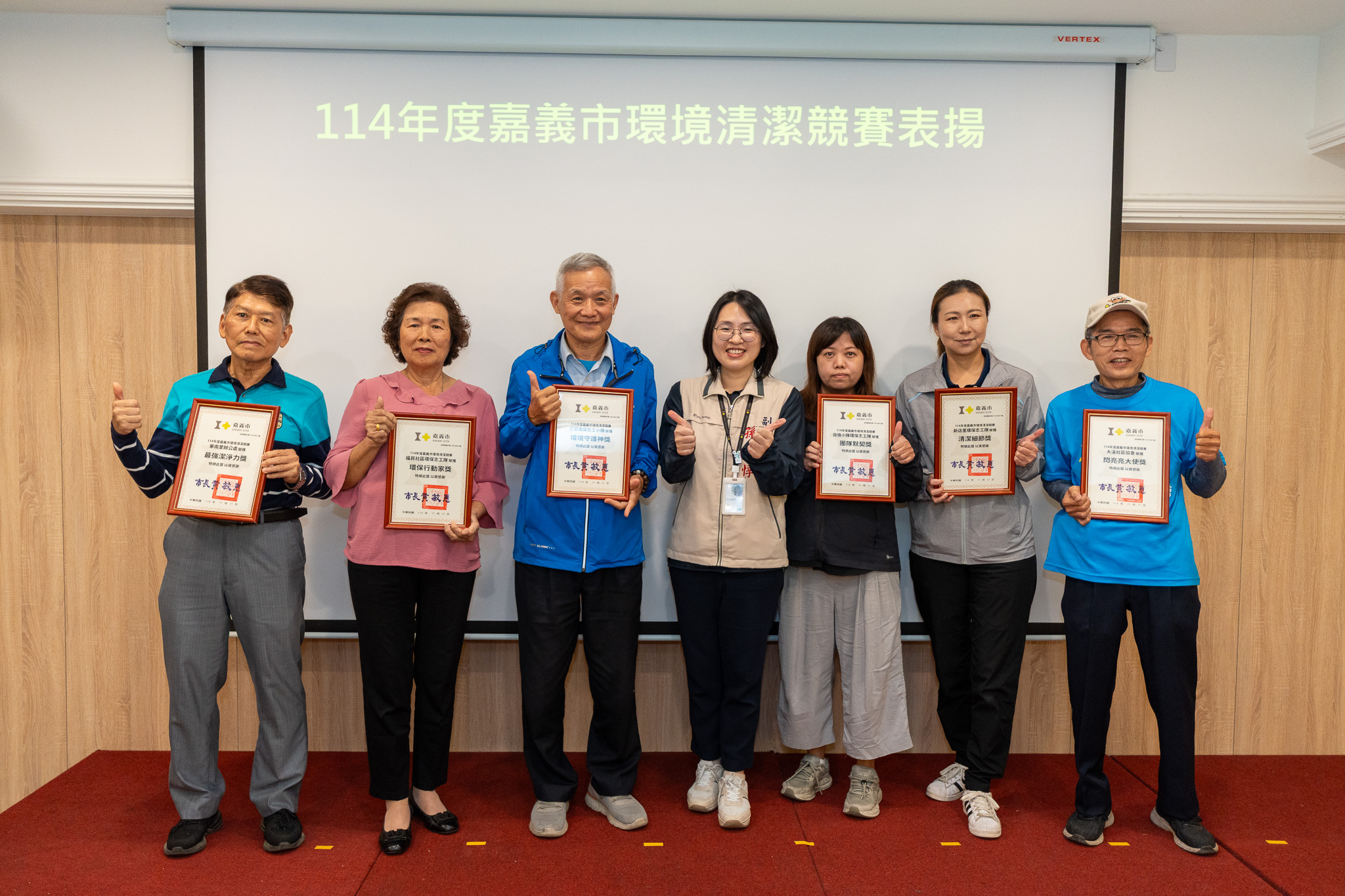 而在城市美學與生活品質息息相關的環境清潔領域,嘉義市今年舉辦的清潔競賽,吸引眾多民眾與環保志工參與。透過友善競賽機制,成功提升居民對居家與社區環境整潔的關注度。本次表揚的隊伍包括:自強小隊環保志工隊、豐年里環保志工小隊、富美環保志工隊、福民社區環保志工隊、華南里辦公處、八獎溪河川巡守隊、新店里環保志工隊、安業環保志工小隊、安業社區發展協會、中庄里環保志工隊、王田環保志工小隊、興村小隊、大溪社區協會、大溪環保志工、龍山環境 clean 隊、新開勇壯隊等在地團隊。