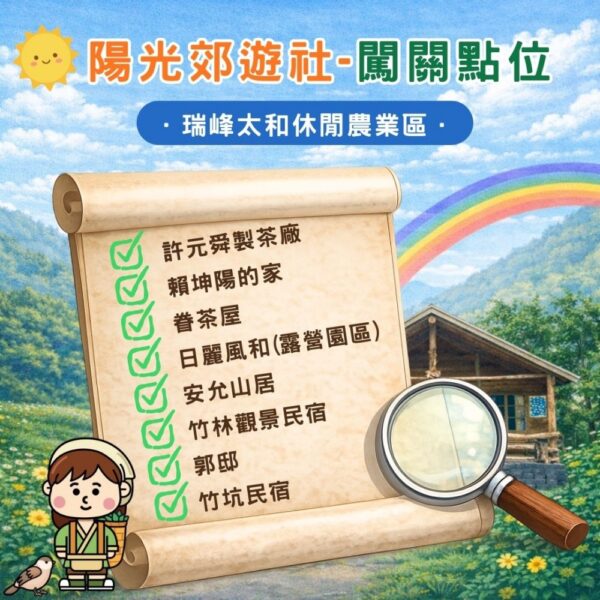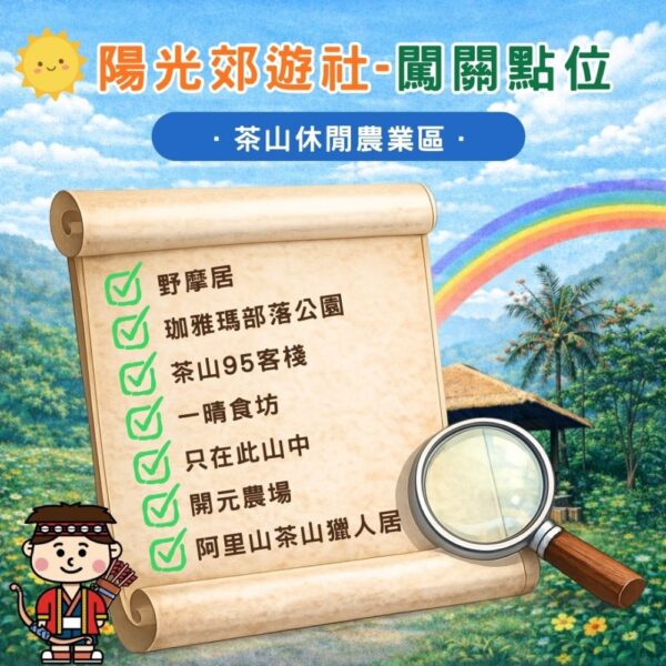 更多活動資訊與推廣內容,歡迎追蹤「嘉義陽光郊遊社」Facebook粉絲專頁(https://www.facebook.com/ChiayiSunshineTour/)。