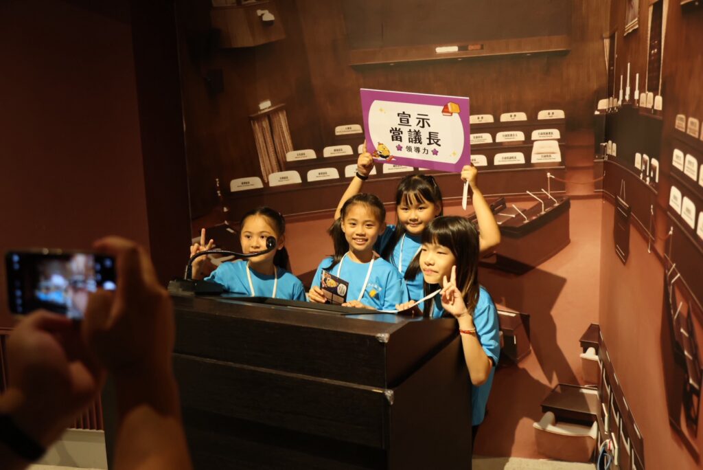 本次公益專場展現了民間產學合作的力量,由臺灣醒世關懷協會與亞洲大學法律服務社共同參與。亞大學生擔任隨隊隊輔與關卡引導,陪伴學童完成投票體驗、就職宣誓等各項闖關任務。過去莊嚴肅穆的省議會議事堂,在小朋友們熱情參與下,增添了溫馨且充滿活力的氣氛。