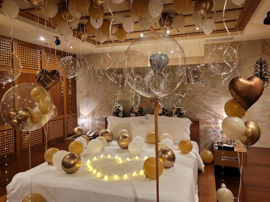 無論是在家中客廳、臥室,或是飯店房間、餐廳包廂,場地條件都會直接影響佈置方式。迪爾設計累積多年經驗,能依空間高度、動線寬度與視覺焦點,調整氣球配置。例如天花板低的空間,會改以垂直落地球串創造層次;動線狹窄時,則避免佔用地面,改以空中或牆面設計呈現。