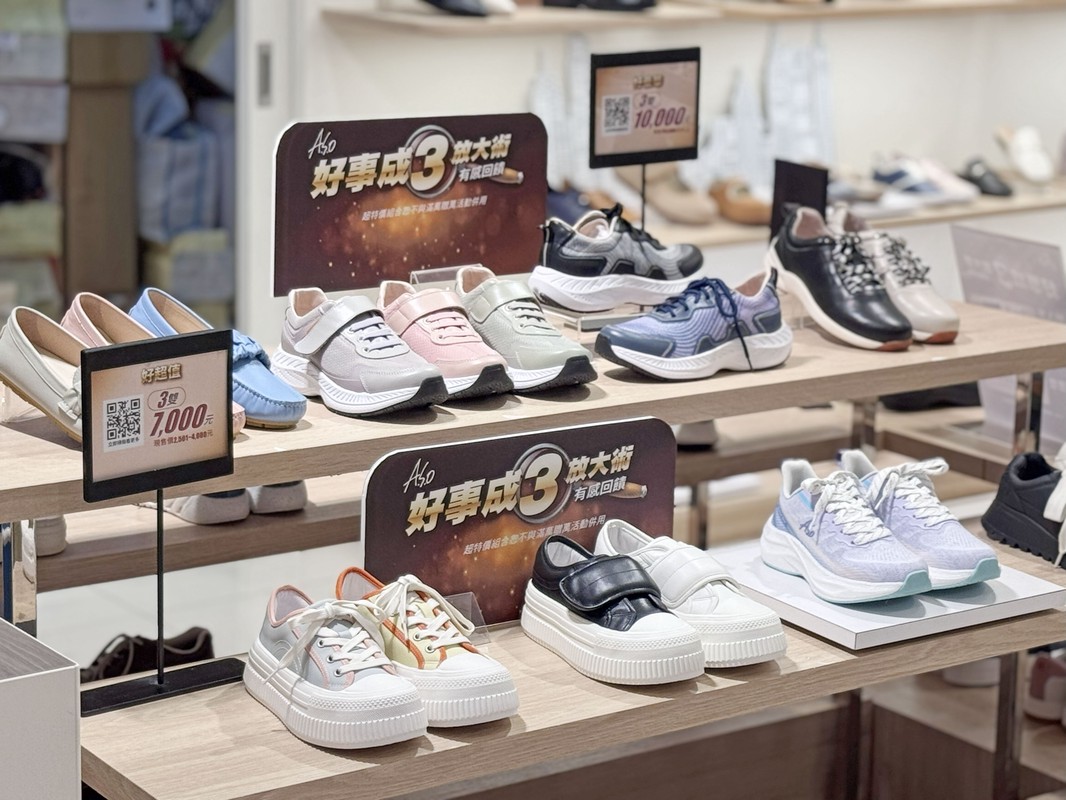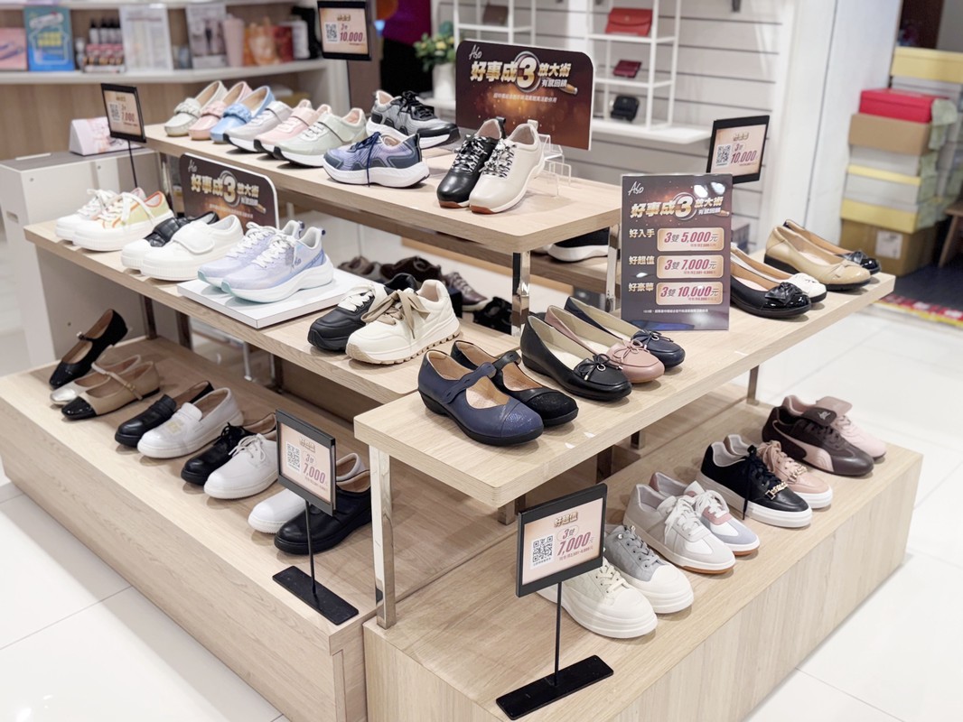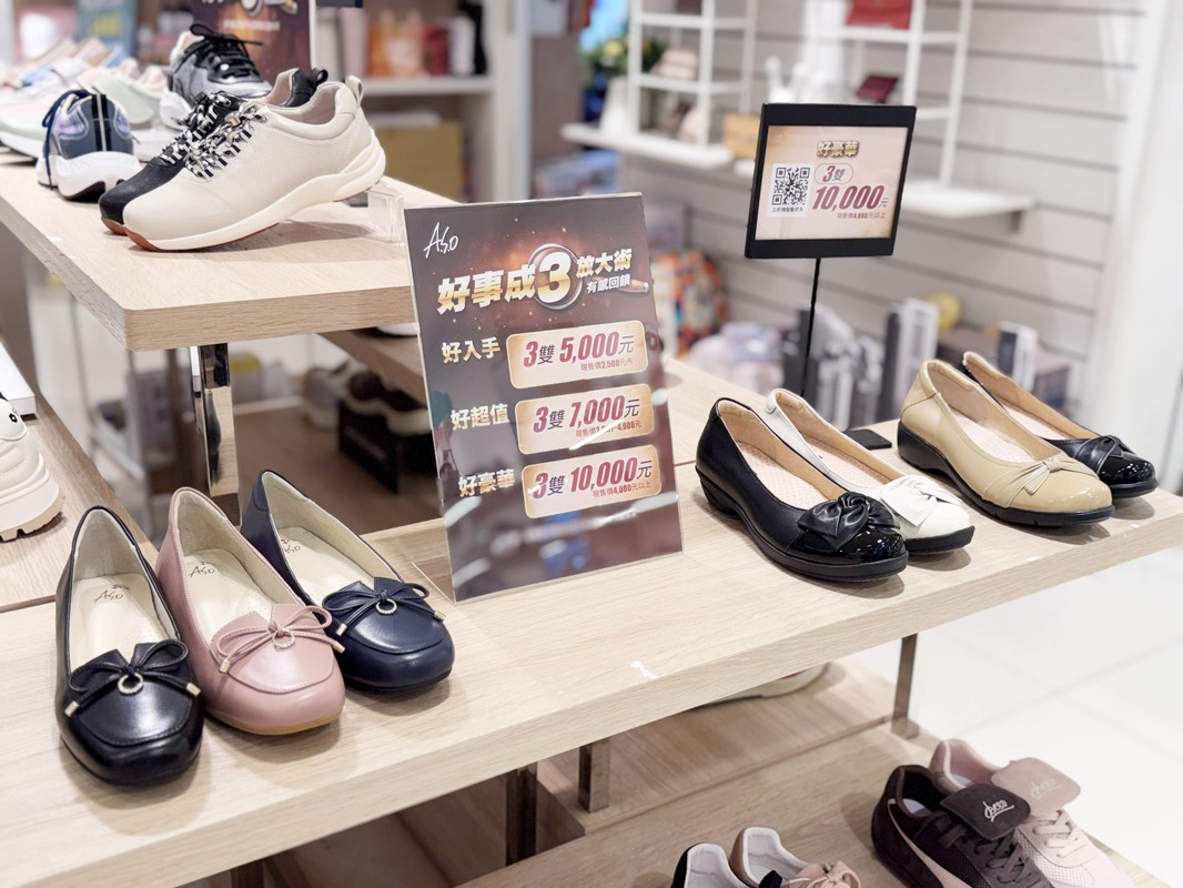 「好事成三自由配」活動中,從經典紳士鞋、氣墊運動鞋到秋冬靴款,任選三雙只要5,000元起。許多家庭趁勢一次替爸媽與孩子換新鞋,兼顧舒適與時尚,實用又划算。