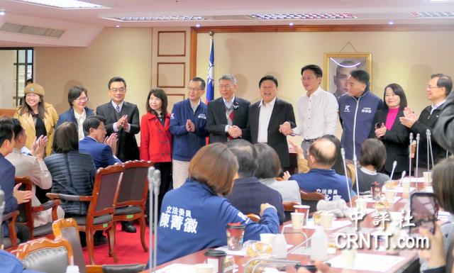 綜合報導/中國國民黨2日舉行立法院黨團總召集人暨首席副書記長選舉,傅崐萁不出意外連任當選,首席副書記長由許宇甄出任。結果出爐後台灣民眾黨前主席柯文哲、主席兼立法院黨團總召黃國昌、黨籍立委聯袂拜訪國民黨黨團全體委員,恭賀新任總召、首席副書記長當選人。柯文哲出現時現場迎來熱烈的掌聲,全場藍白互動和諧。