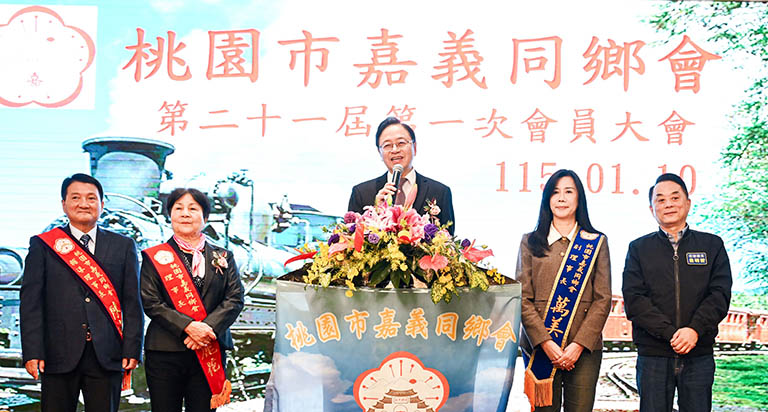 桃園市長張善政今(10)日上午前往八德區,出席「桃園市嘉義同鄉會第21屆第1次會員大會」。張市長表示,嘉義同鄉會會員遍布全桃園,各自在不同領域努力打拚、表現亮眼,不僅展現嘉義人勤奮踏實的精神,也為社會注入正向能量,期盼同鄉會能持續成為市府與民間溝通的重要橋梁,協助市政政策更貼近民眾需求,共同打造和諧共好的城市環境。