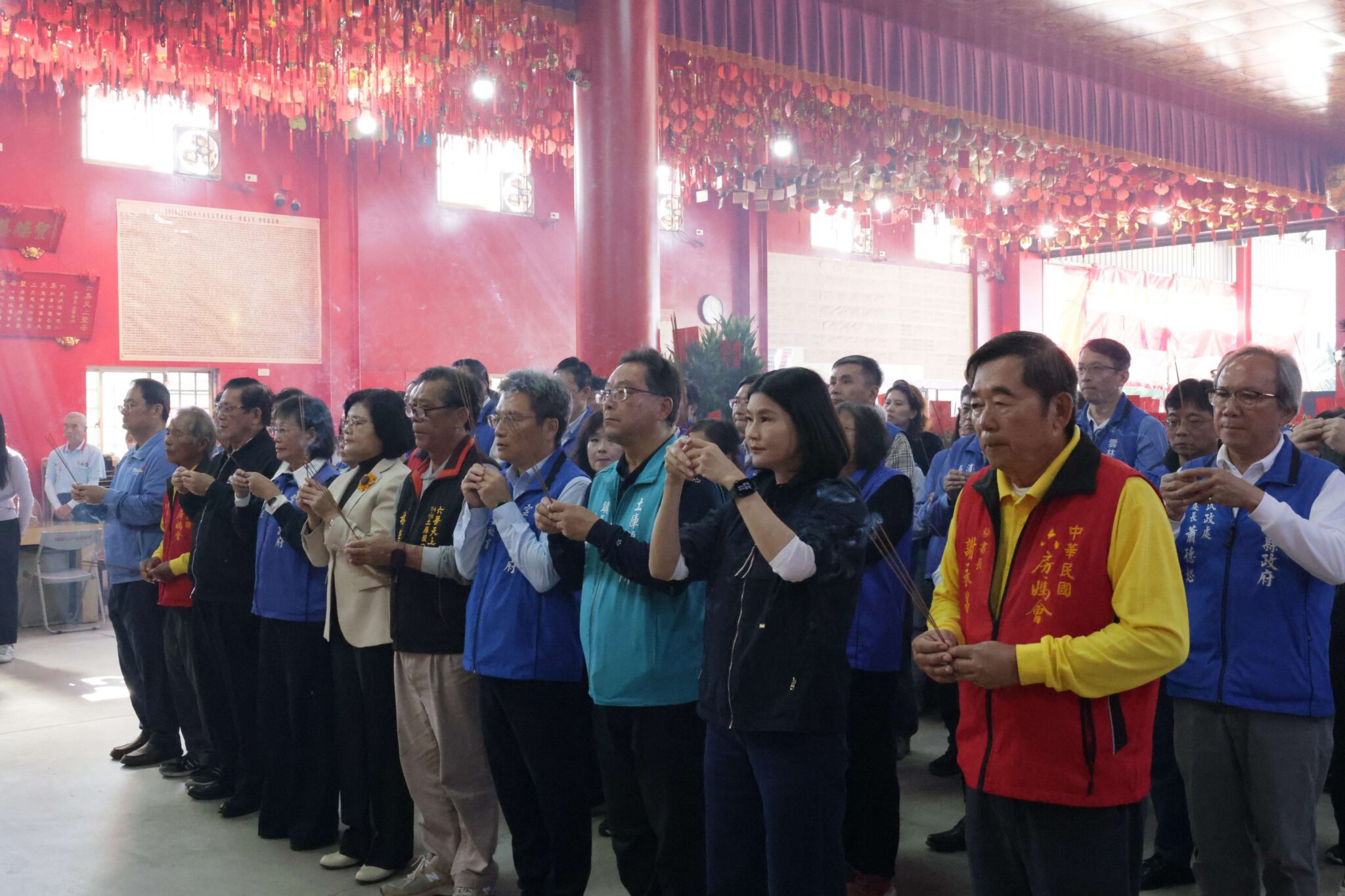 雲林縣政府睽違12年將於明日再度舉辦跨年晚會,縣長張麗善今(12/30)日特別率副縣長謝淑亞、縣政總顧問張清良、秘書長曾元煌、機要秘書黃凱達及各局處首長,前往土庫六房媽紅壇參拜,虔誠祈求跨年活動圓滿順利、民眾平安迎新。