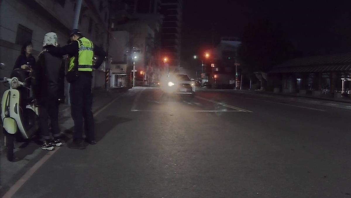 記者尤華恩/台南報導 台南市歸仁警分局文賢派出所警員謝育朝及張雯倩於日前晚上執行巡邏勤務時,在臺南市仁德區文賢路一段與仁德轉運站附近發現1輛機車闖紅燈,即上前示意該機車駕駛人停車接受稽查。