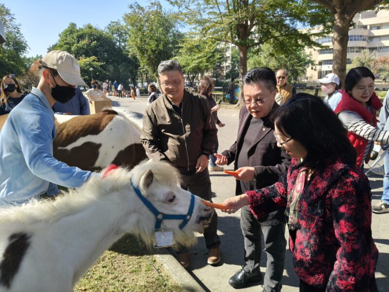 張可立董事長致詞時感謝各界牽線促成,讓新的一年「好事成雙」,不僅迎來兩對黑天鵝,也增添迷你馬的數量。張可立表示,黑天鵝壽命最長可達三十年,過去曾陪伴許多校友成長,如今重新迎接新客入住慈母湖,與華鵝、白羅曼鵝、綠頭鴨等水禽共處一湖,與草地上低頭覓食的迷你馬,雙雙成為校園師生療癒的亮點。
