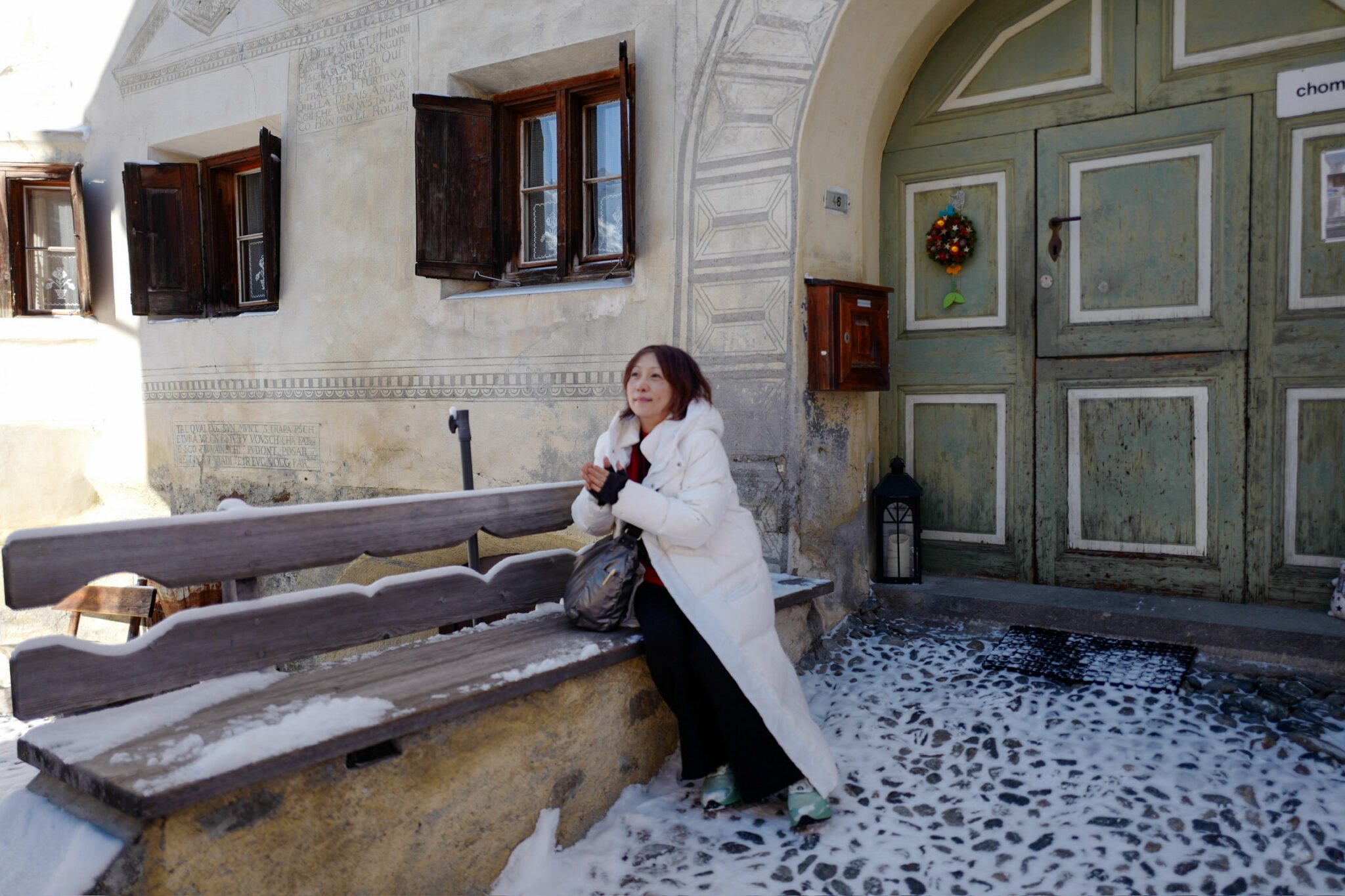 她此行踏遍波斯基亞沃谷(Val Poschiavo)、世界遺產級阿爾卑斯火車路線、療癒名城阿羅莎(Arosa),也搭冰河列車橫跨山谷。她笑說最震撼的畫面,是看到「雪白世界裡居然還擁抱著楓紅」,像兩個季節撞在一起,「美到像在做白光冥想」,「也讓人覺得更渺小,讚嘆造物主的神奇美學。」