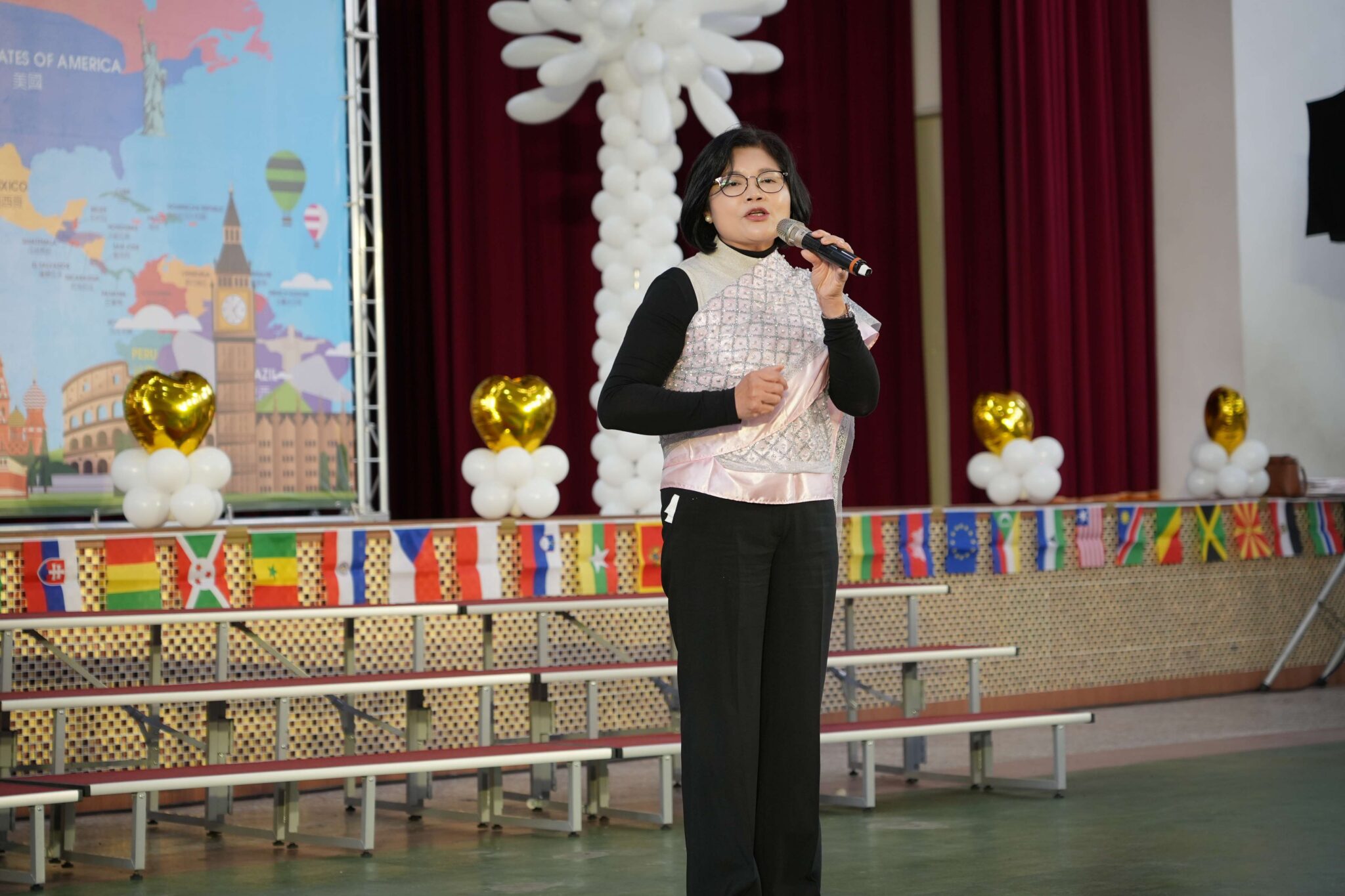 縣長張麗善、副縣長謝淑亞、議員黃美瑤等出席活動的貴賓,穿著泰國、越南等國服飾,與來自縣內8所學校800多名師生一起學用各國語言說出「新年快樂」,熱鬧迎接2026年。