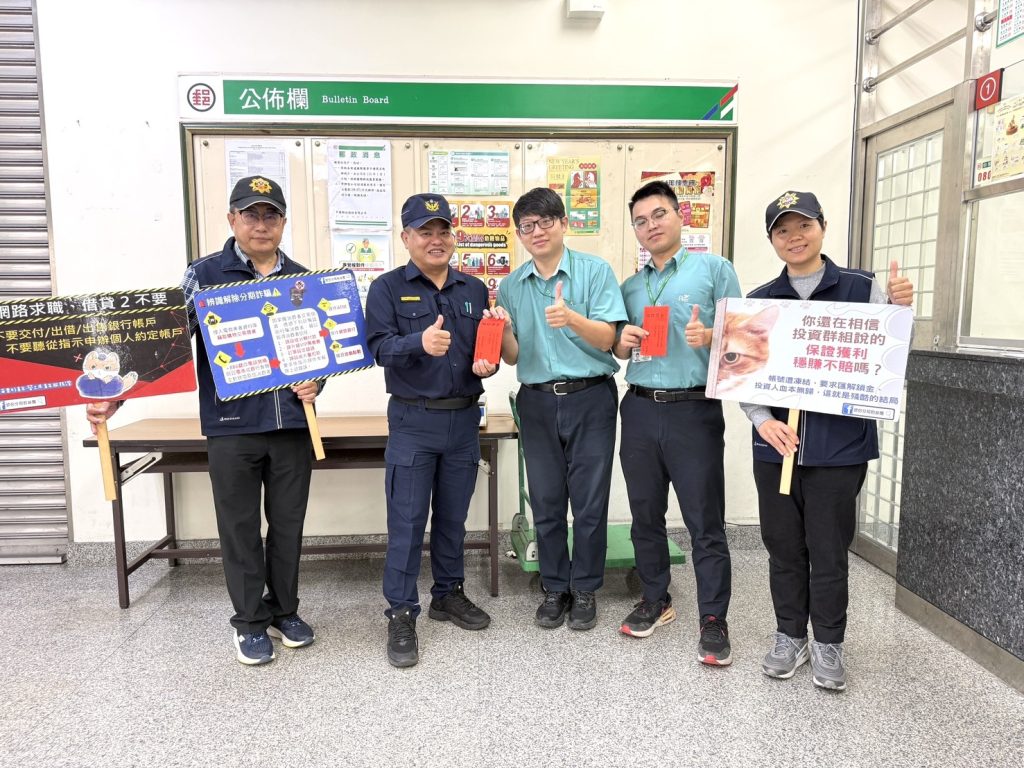 苗栗縣警察局頭份分局鑑於詐騙案件層出不窮導致民眾財產遭受損害,為提升阻詐成效,積極與轄內金融機構保持密切聯繫外,為感謝頭份郵局、上公園郵局、尖山郵局、田寮郵局與超商店員與行員的機警應變與主動通報,分局長郭譯隆特別率偵查隊長魯竟成、偵查員黃家華、警員解惠茹親自前往致謝,以表彰協助攔阻詐騙有功人員,警分局將持續與金融機構合作,強化防詐聯防網,攜手守護民眾財產安全。