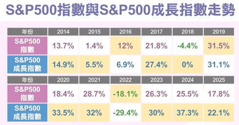 不過,她也提醒,成長型ETF並非無風險。根據回測資料,S&P500成長指數過去12年中,有9年表現優於大盤,勝率達75%,不過在升息循環初期表現則明顯承壓,主要因資金緊縮對成長股估值產生壓力,但也常成為長線投資人布局時點。