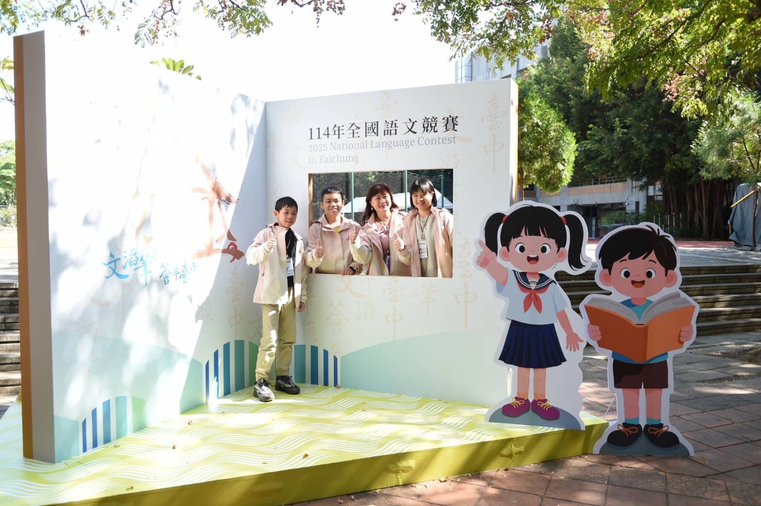 教育局為營造更具文化氛圍的競賽場域,特別在賽場周邊規劃了「創意祈願互動區」、「拍照打卡區」及「台中文學地景圖導覽區」,讓競賽員及陪同師長可書寫祝福及祈願語,並留下精彩紀念影像,更能認識台中豐富的文學歷史與城市脈絡,感受書香之都的文化氣息。