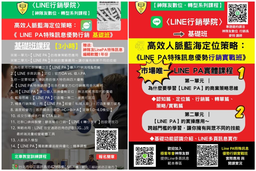 獨家工具賦能: 課程學員將獲贈「神隊友 Line PA 特殊訊息 編輯軟體 1 年份」,確保學員能將理論轉化為實際的行銷資產。