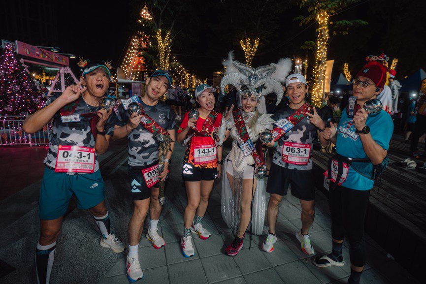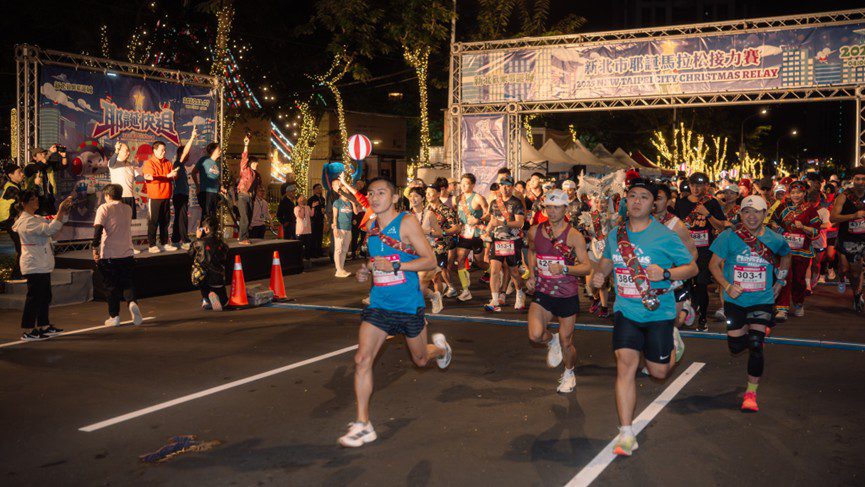 「2025新北市耶誕馬拉松接力賽」今(7)日清晨5時30分於新北市政府市民廣場登場,在上千名跑者的歡呼聲中熱力開跑。今年活動邁入第二屆,共吸引近600支隊伍報名參賽,延續去年的高人氣,以「三人一隊」全新接力賽制登場。賽程總長24.7公里,分為8.4公里、5.2公里與11.1公里三棒,短、中、長距離一次涵蓋,適合各類型的跑者一同參與。 延續首屆為追友加碼祭出的專屬特色,今年再度於清晨集結時分將耶誕城的所有繽紛燈飾精彩點亮,為跑者注入溫馨與活力,也象徵平安挑戰完賽的祝福能量傳遞給每一位跑者,更為清晨的新北歡樂耶誕城揭開序幕。 第一棒跑者凌晨530準時起跑。(新北市觀旅局提供) 跑者變裝熱情滿滿。(新北市觀旅局提供) 賽事自新北市政府市民廣場(歡樂耶誕城)出發,沿著縣民大道奔馳,跑者們揹上特色接力信物──巨型銀色鈴鐺,在耶誕前夕伴隨幸福鈴鐺聲迎接節慶氣息。沿途更有變裝組追友發揮創意與巧思扮裝,散播歡笑聲吸引選手們的目光。另外,本屆特別設置團隊「大進場」,共同跑進終點拱門的環節,讓隊友們在完成接力後一同熱血衝線,留下專屬於團隊的完賽記憶。完賽後,每位跑者皆可獲得象徵團隊榮譽的立體拼接獎牌,拼出一棵金色聖誕樹。 2025新北耶誕馬拉松接力賽,冠軍隊伍3位跑者攜手衝線奪冠。(新北市觀旅局提供) 新北市劉和然副市長表示,「新北市耶誕馬拉松接力賽」是「新北歡樂耶誕城」系列活動中的亮點之一,是結合運動、觀光與節慶魅力的路跑活動,不僅展現市民的健康活力,更讓跑者在耶誕燈飾與音樂交織下體驗最浪漫的城市路跑氛圍。未來,新北觀光局將持續推動運動觀光,打造更多結合節慶與運動的城市體驗,讓市民與旅客都能在新北歡樂耶誕城裡,跑出幸福、跑出回憶。