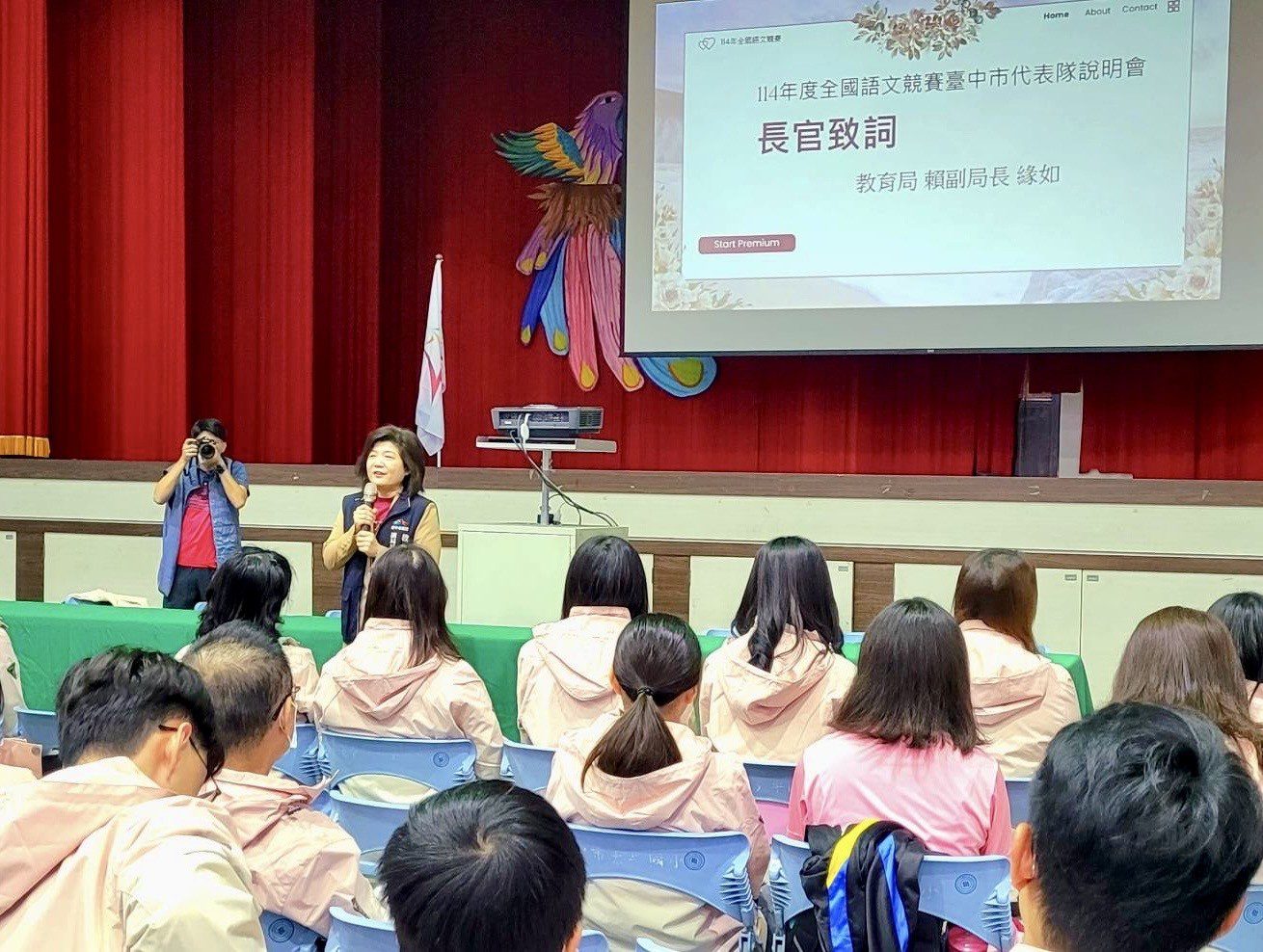臺中市政府教育局賴緣如副局長為競賽員加油勉勵