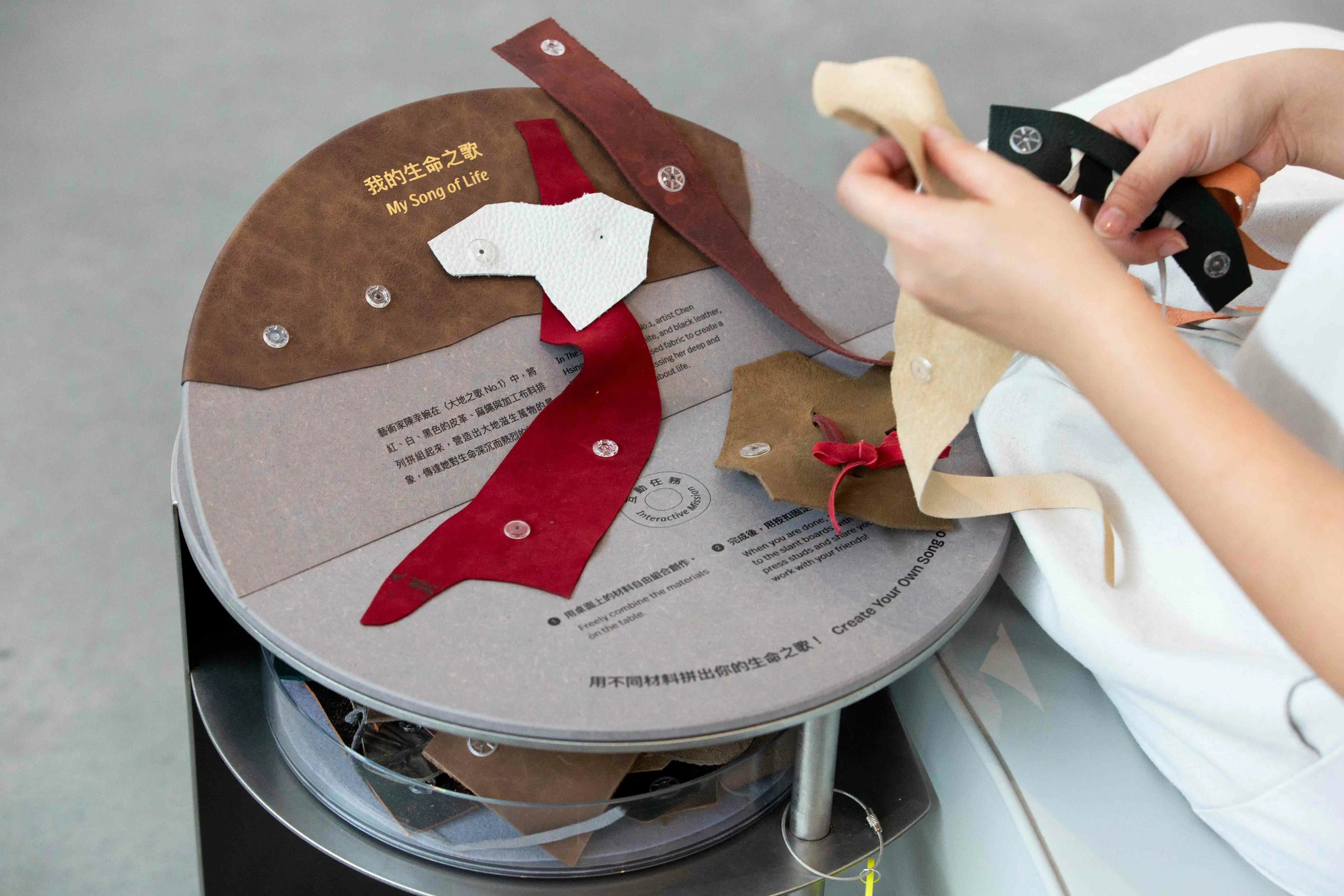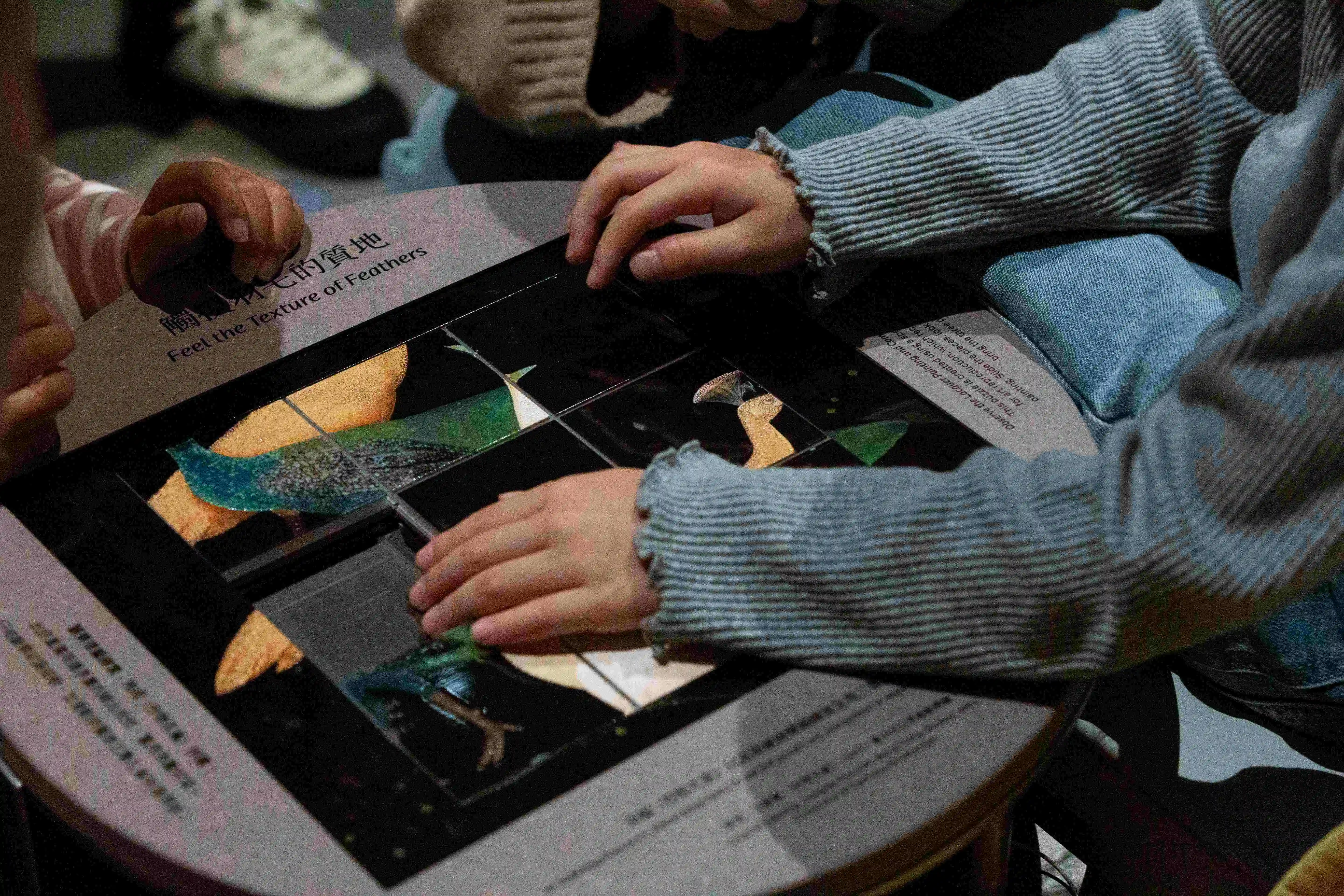 特展型教具則搭配中美館開館首展「萬物的邀約」,展期至明年4月12日,從臺中藝術家陳幸婉的複合媒材作品〈大地之歌No.1〉以及人間國寶王清霜漆藝作品 〈佇聆孔雀〉中,發展出可供觀眾觸摸的複合媒材布料及不同漆藝技法的材質板,讓展覽不僅止於靜態觀看,更能透過觸覺認識藝術家所使用的創作材料。現場亦設置創作體驗區,營造觀眾可以揮灑創意的平臺,進而與作品對話。