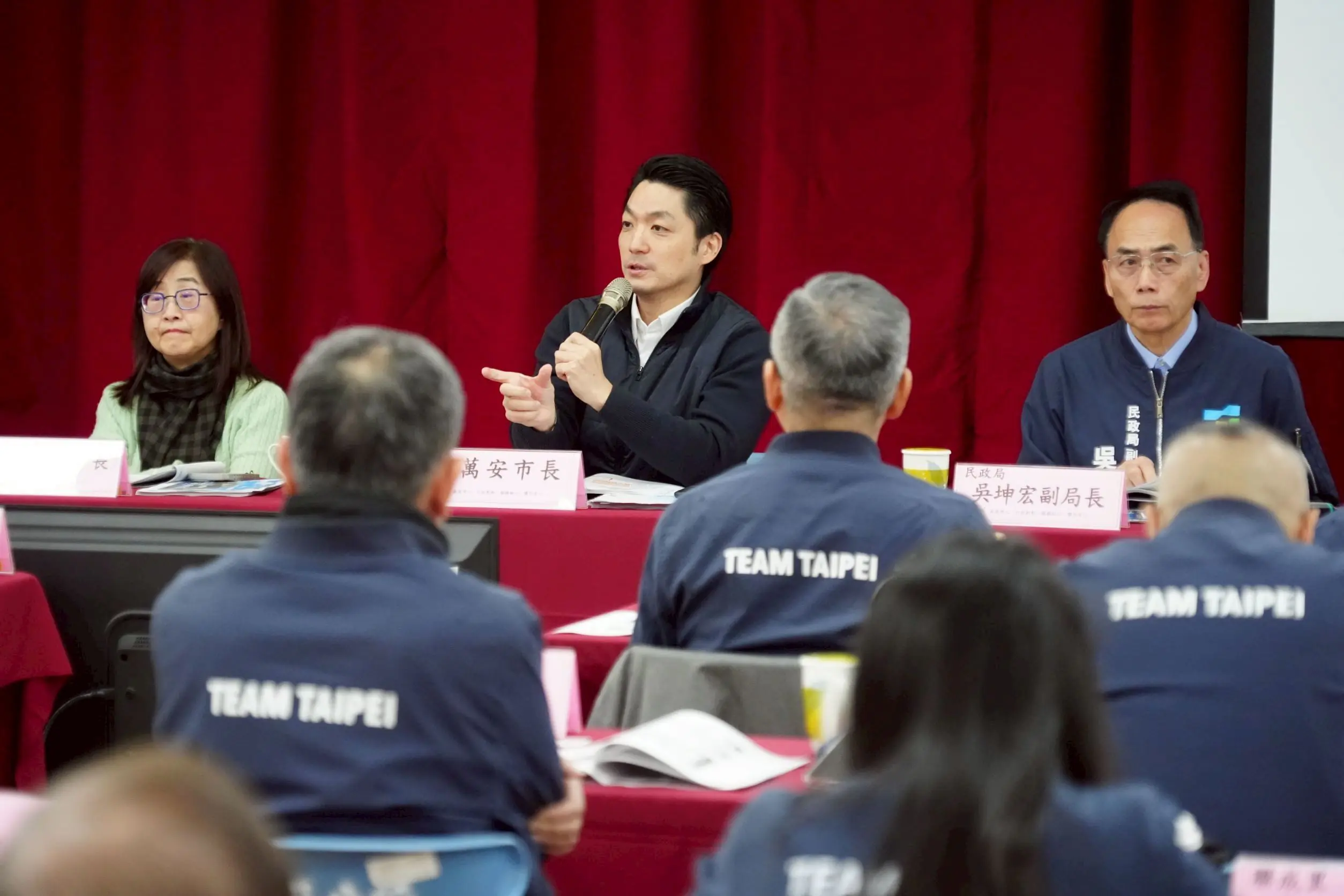 會中里長反映四分河濱公園逢大雨易積淹水問題。蔣萬安表示,相關改善工程已完成設計,年後即可動工,預計最快年中完工,將有效解決排水與環境衛生問題,提供市民更安全舒適的休憩空間。