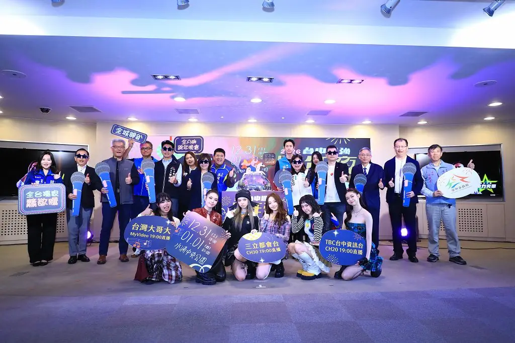 【台灣電報記者廖宥婷/台中報導】 台中市政府今(18)日舉辦「2026台中最強跨年夜」記者會,正式宣布跨年晚會將於12月31日晚間6時,在水湳中央公園盛大登場。今年再度集結「全國含金量最高」的超強卡司,由金曲歌王蕭敬騰領軍,攜手三金滿貫歌王盧廣仲、經典天團動力火車、金曲天團告五人等共16組重量級藝人輪番開唱,並於倒數時刻施放長達180秒大型煙火秀,陪伴全國民眾迎接2026年第一刻。 台中女兒的蔡尚樺與幽默風趣的小龜聯手主持今-18-日記者會 新聞局長欒治誼代表市長盧秀燕表示,台中跨年演唱會年年升級,兼具頂級卡司、優質場地與完善硬體服務,深受民眾喜愛。去年跨年活動吸引48萬人次到場,創下歷史新高,今年市府以更強大的演出陣容與更完善的規劃回應期待,邀請全國民眾再次齊聚台中,共度最精彩的跨年夜。 今日記者會新生代人氣女團-babymint熱烈表演 欒治誼指出,今年獨家邀請蕭敬騰登台,並集結盧廣仲、告五人、動力火車、麋先生MIXER、TRASH、怕胖團等橫跨世代與曲風的高人氣藝人,打造全台指標性的跨年舞台。跨年夜也將在水湳中央公園開闊視野中,施放180秒璀璨煙火,帶來最震撼的新年倒數體驗。 今-18-日台中跨年記者會各方嘉賓共同與會 市府同步推出「台中Hi8・全城開趴」系列活動,串聯年底至年初八大重點盛事,結合演唱會、文化活動與觀光體驗,邀請民眾安排兩天一夜或三天兩夜行程,深度感受台中城市魅力。 交通局長葉昭甫說明運輸資訊 交通方面,交通局表示,跨年夜建議多搭乘捷運與接駁車前往,捷運將加密班次並延長營運至凌晨2時,另規劃免費接駁路線與周邊交通管制措施,確保活動期間人流與交通順暢。市府也提醒民眾提前規劃動線,或透過線上即時交通資訊掌握現場狀況。
