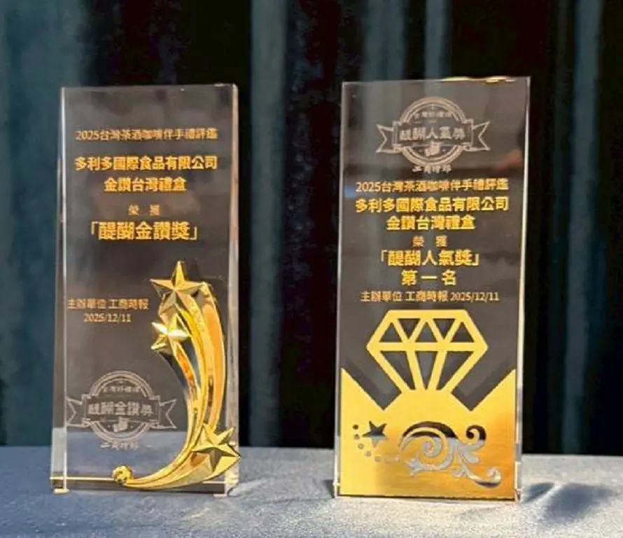 多利多國際食品有限公司以旗下代表性商品『金讚台灣禮盒』,同時榮獲「醍醐金讚獎」與「醍醐人氣獎」,成為本屆評鑑中少數獲得專業評審與市場消費者雙重肯定的品牌之一,充分展現台灣果乾伴手禮在品質實力、品牌理念與市場接受度上的卓越表現。