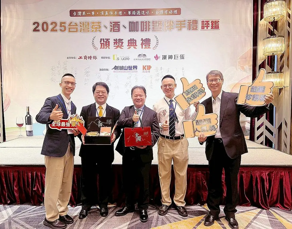 由《工商時報》主辦的「2025 台灣茶、酒、咖啡暨伴手禮評鑑」結果正式揭曉。本屆評鑑攜手 Q square 京站時尚廣場、臺中驛鐵道文化園區及高雄漢神巨蛋共同協辦,透過專業評審團嚴謹評選與消費者票選機制,選出年度最具代表性的伴手禮品牌,頒發「醍醐金讚獎」、「醍醐珍饌獎」與「醍醐人氣獎」三大最高榮譽。