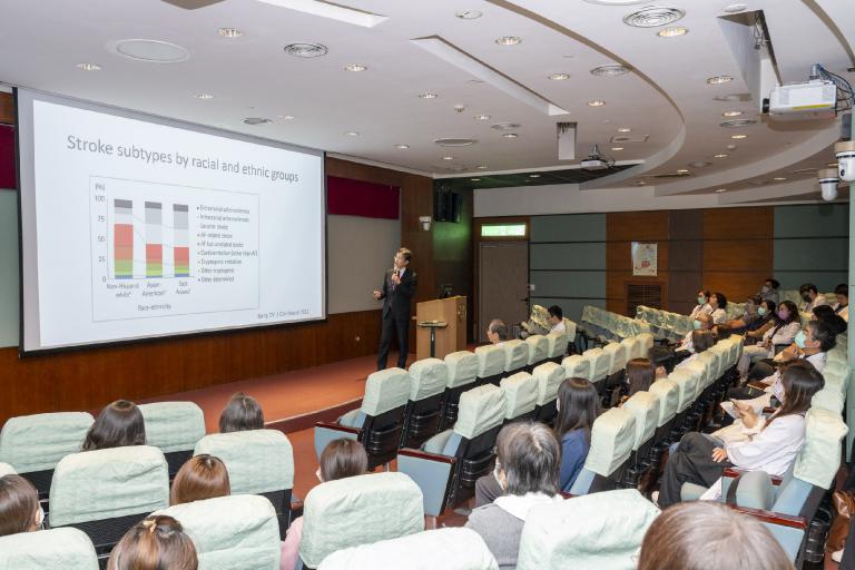 在演講中,Ihara教授深入解析東亞族群特有的基因表現差異,並分享日本最新的大型族群研究成果。他強調,精準的基因定序是早期篩檢高風險族群、避免中風悲劇的關鍵第一步。