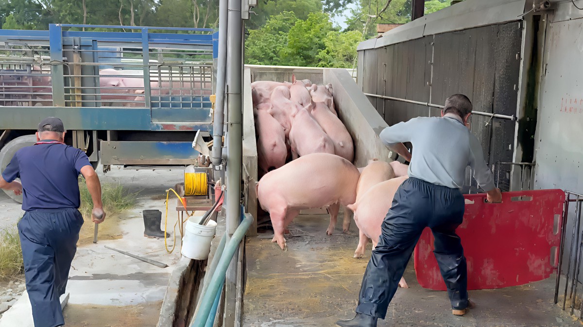 屏東地區一家大型養豬業者表示,中午一解禁,已有多輛運豬車陸續進場載運豬隻前往屠宰場。業者指出,禁宰期間成豬普遍出現過重情況,預估約需兩個月時間才能逐步消化多出的豬隻。