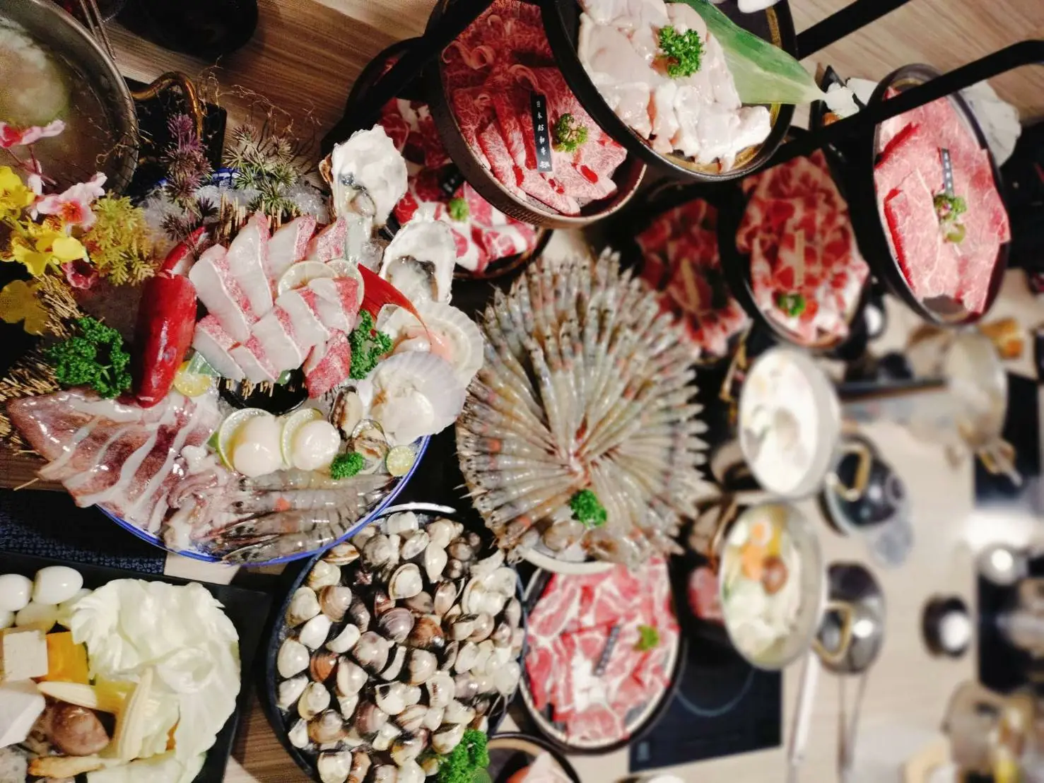 許多家庭、情侶、朋友團體已紛紛換上聖誕主題穿搭,現場氣氛溫馨又歡樂。一位身穿紅色毛衣的媽媽開心分享:「孩子一看到蝦就尖叫,連肉品都還沒開始煮,蝦子就先吃掉半份!」現場笑聲不斷,節慶氛圍滿滿。