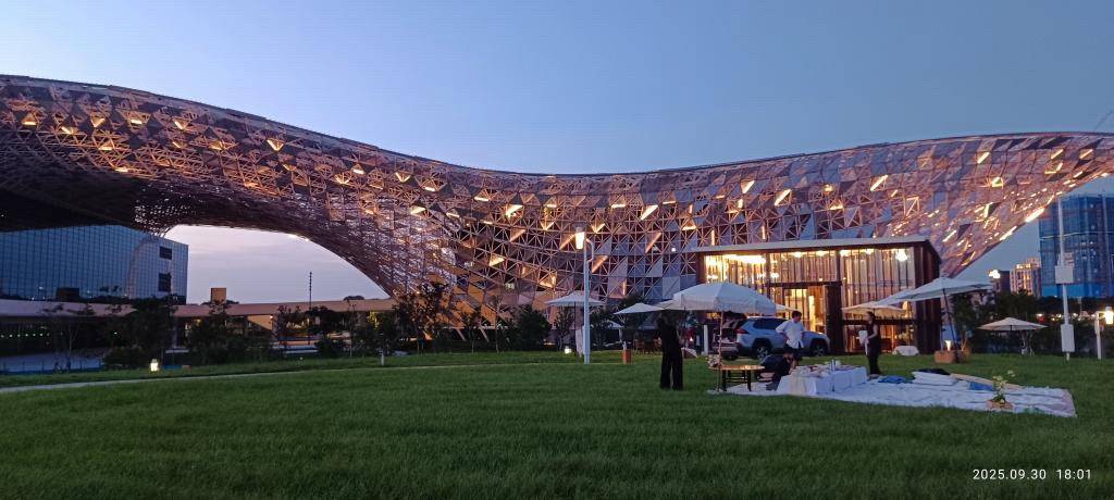 傍晚夕陽餘暉配上台中國際會展中心點燈更是一番美景