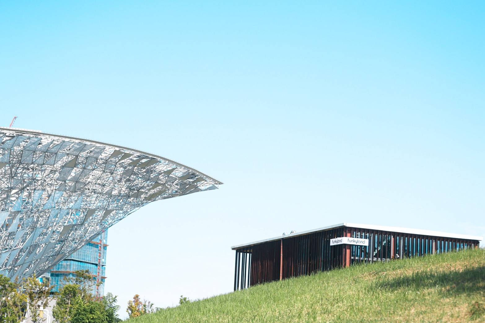 「Funkyland」背倚綠美圖與臺中國際會展中心的開闊景致